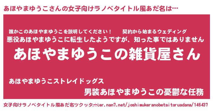 | ヒーロー風カッコイイあだ名 | 『ウルトラあほやまゆうこマン』 |