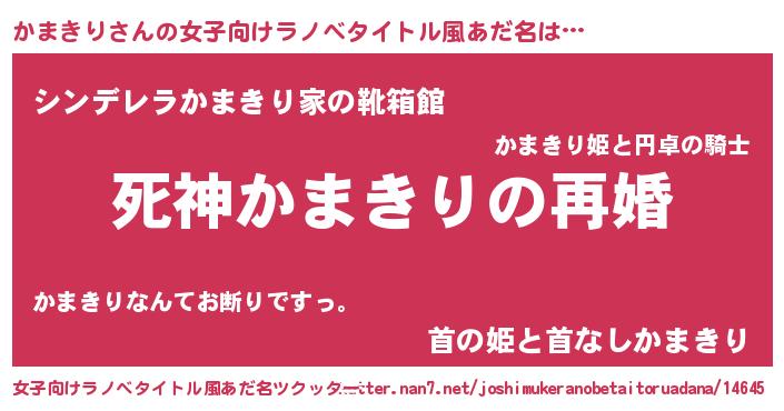 | 男性向けラノベタイトル風あだ名 | 『ノーゲーム・ノーカマキリ』 |