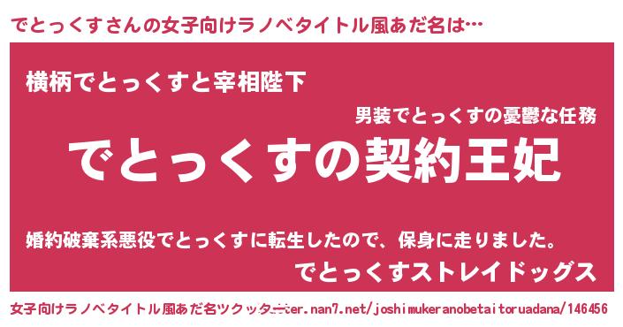 | 男性向けラノベタイトル風あだ名 | 『でとっくすという概念が存在しない退屈な世界 』 |