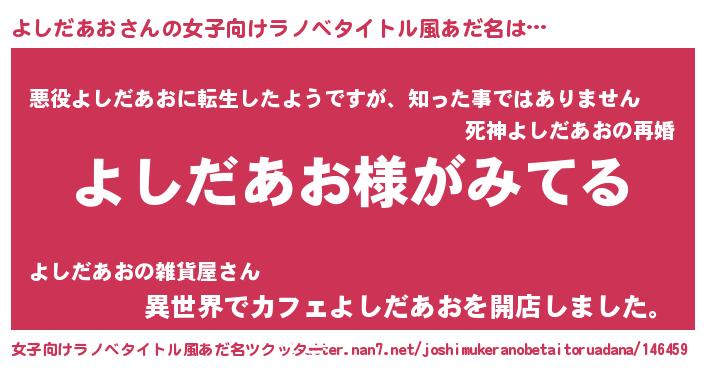 | 男性向けラノベタイトル風あだ名 | 『よしだあおの嫁は女の子じゃないと思った?』 |