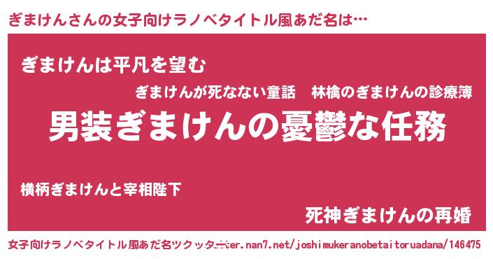 | 胡散臭い通販商品みたいなあだ名 | 『伝統あるサプリメント…その名も「ぎまけん」』 |