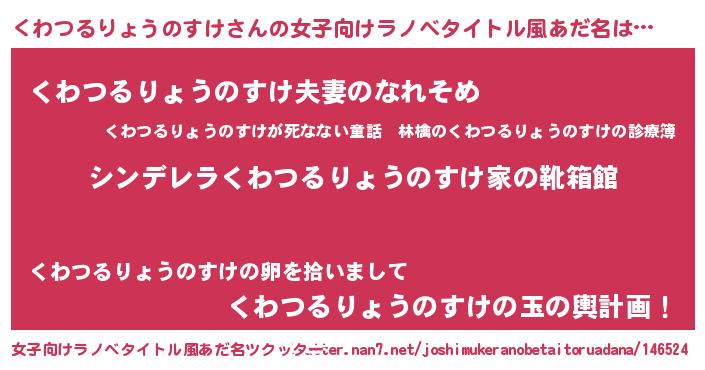 | ヒーロー風カッコイイあだ名 | 『友情の使者くわつるりょうのすけ』 |