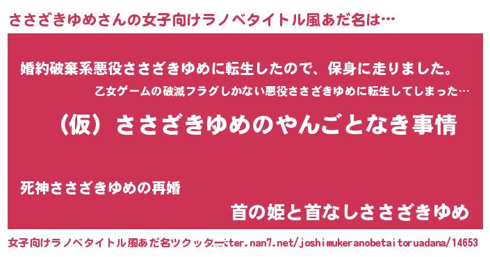 | 男性向けラノベタイトル風あだ名 | 『ささざきゆめの憂鬱』 |