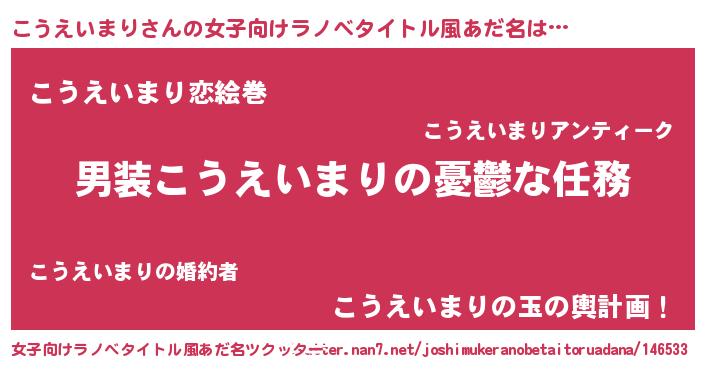 | 男性向けラノベタイトル風あだ名 | 『うちのこうえいまりが世界を掌握している!』 |