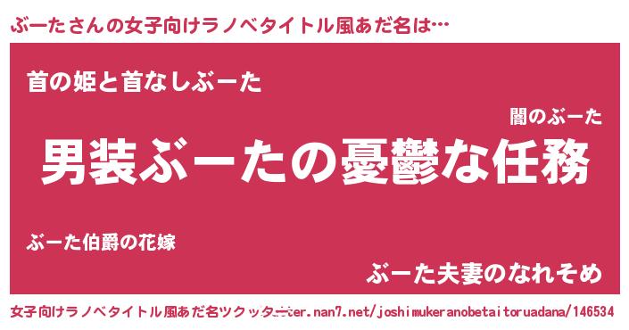 | 男性向けラノベタイトル風あだ名 | 『うちのぶーたが世界を掌握している!』 |
