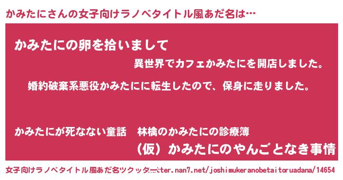 | 胡散臭い通販商品みたいなあだ名 | 『信頼と実績のサプリメント…その名も「かみたに」』 |