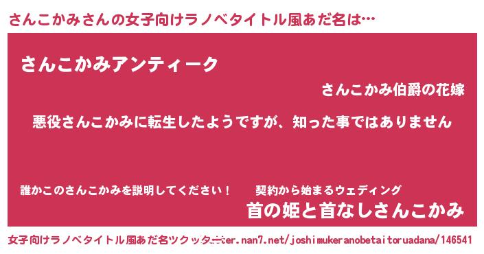 | 男性向けラノベタイトル風あだ名 | 『この素晴らしい世界にさんこかみを!』 |