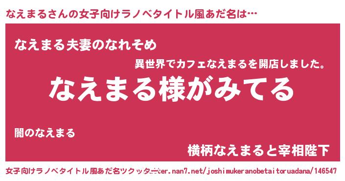 | 男性向けラノベタイトル風あだ名 | 『なえまるの嫁は女の子じゃないと思った?』 |
