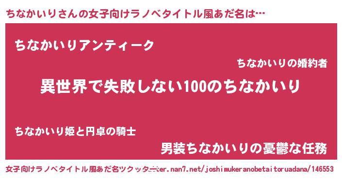 | 男性向けラノベタイトル風あだ名 | 『ちなかいりという概念が存在しない退屈な世界 』 |