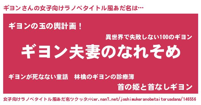 | 男性向けラノベタイトル風あだ名 | 『おまえをオタクにしてやるから、俺をギヨンにしてくれ! 』 |