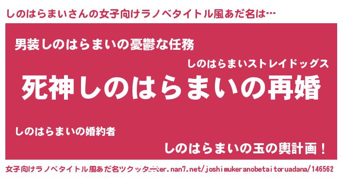 | 男性向けラノベタイトル風あだ名 | 『ノーゲーム・ノーシノハラマイ』 |