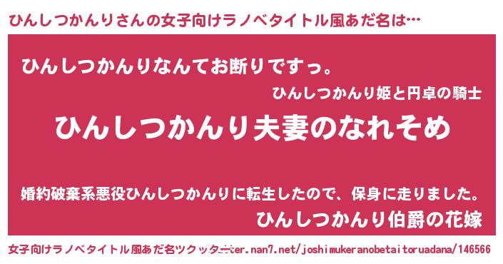| 男性向けラノベタイトル風あだ名 | 『おまえをオタクにしてやるから、俺をひんしつかんりにしてくれ! 』 |