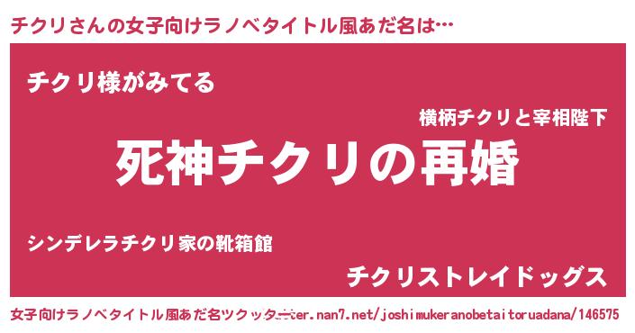 | 男性向けラノベタイトル風あだ名 | 『ノーゲーム・ノーチクリ』 |