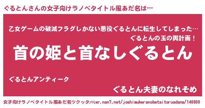 | 男性向けラノベタイトル風あだ名 | 『はたらくぐるとんさま!』 |