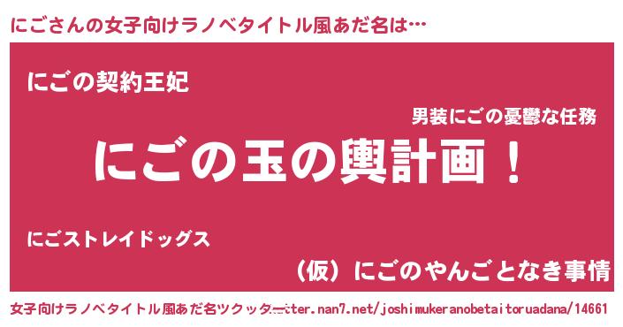 | ヒーロー風カッコイイあだ名 | 『ネオニゴ』『スーパーニゴ』 |