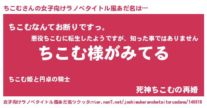 | ヒーロー風カッコイイあだ名 | 『天弓騎士チコ』『超時空戦士チコム』 |