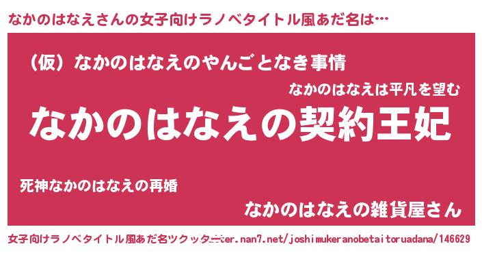 | 男性向けラノベタイトル風あだ名 | 『なかのはなえという概念が存在しない退屈な世界 』 |