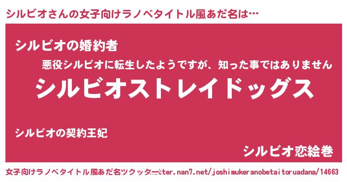 | 男性向けラノベタイトル風あだ名 | 『Re:シルビオから始める異世界生活』 |