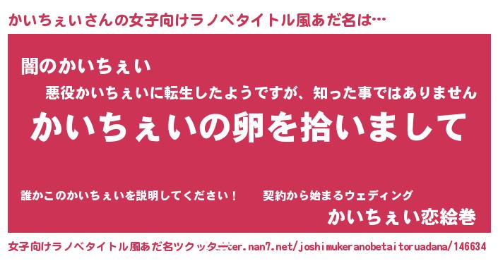 | 男性向けラノベタイトル風あだ名 | 『かいちぇいの嫁は女の子じゃないと思った?』 |