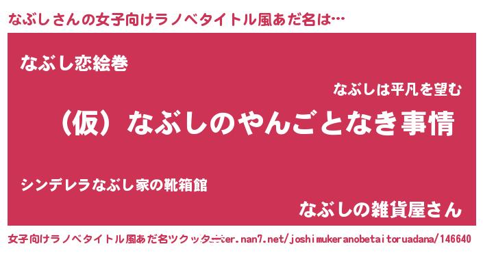 | ヘコむあだ名 | 『なぶっふぃ~』『豆乳』『なぶを』 |