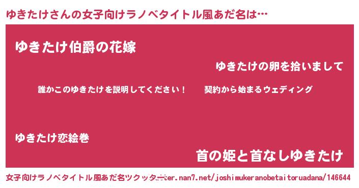 | 男性向けラノベタイトル風あだ名 | 『ユキタケアートオンライン』 |