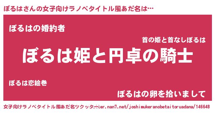 | 男性向けラノベタイトル風あだ名 | 『ボルハアートオンライン』 |