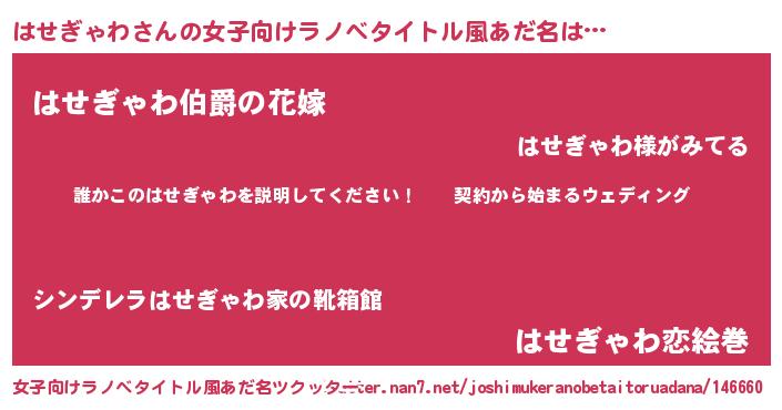 | 胡散臭い通販商品みたいなあだ名 | 『億万長者になれる水晶球…その名も「はせぎゃわ」』 |