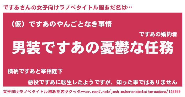 | 男性向けラノベタイトル風あだ名 | 『うちのですあが世界を掌握している!』 |