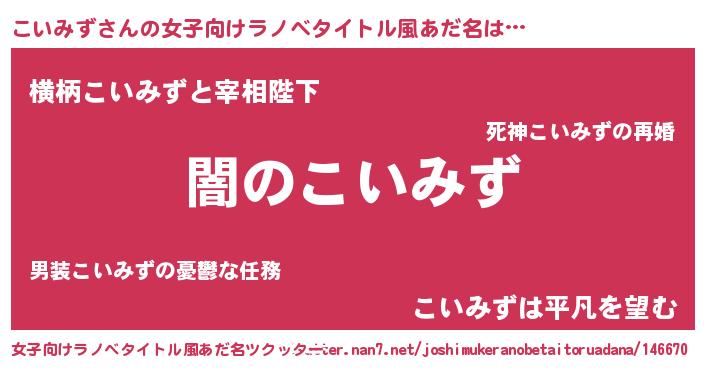 | 意味不明あだ名 | 『自称こいみず』『永久保存こいみず』 |