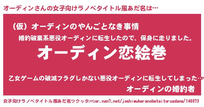 | 男性向けラノベタイトル風あだ名 | 『ノーゲーム・ノーオーディン』 |