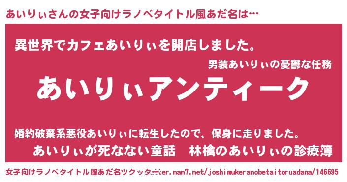 | 男性向けラノベタイトル風あだ名 | 『魔法科高校のあいりぃ』 |