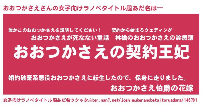 | 男性向けラノベタイトル風あだ名 | 『誰もが恐れるあのおおつかさえが、ぼくの専属メイドになるようです。』 |