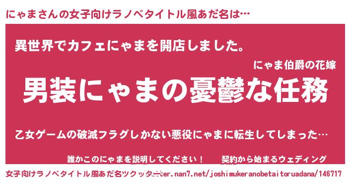 | 意味不明あだ名 | 『永久保存にゃま』『ペロリンにゃま』 |