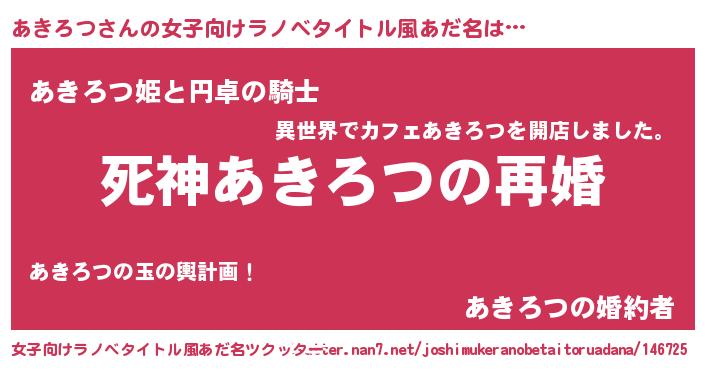 | 男性向けラノベタイトル風あだ名 | 『ノーゲーム・ノーアキロツ』 |