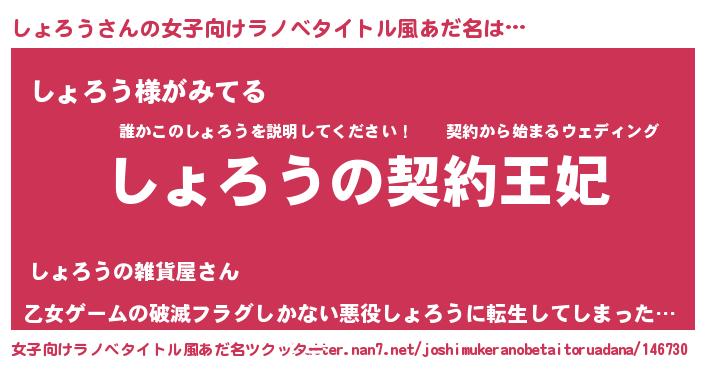 | 胡散臭い通販商品みたいなあだ名 | 『来世でも幸せになれる健康食品…その名も「しょろう」』 |