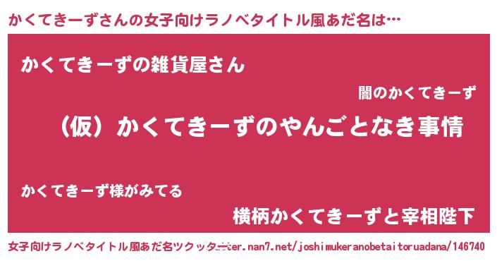| 男性向けラノベタイトル風あだ名 | 『かくてきーずの憂鬱』 |