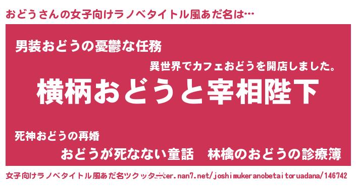 | 胡散臭い通販商品みたいなあだ名 | 『あなたにだけ特別に提供する100年もののヴィンテージワイン…その名も「おどう」』 |