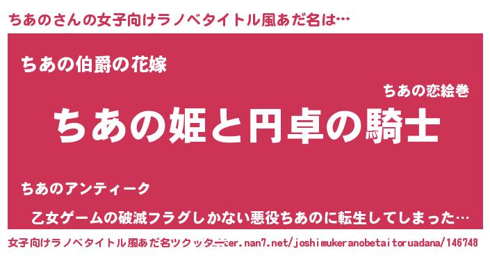 | 男性向けラノベタイトル風あだ名 | 『ちあのの憂鬱』『魔法科高校のちあの』 |