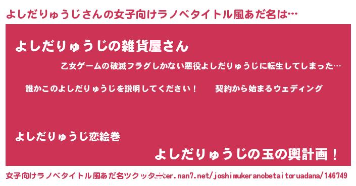 | 肩書あだ名 | 『よしだりゅうじ御曹司』 |