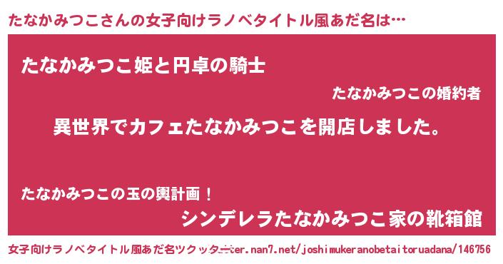 | 男性向けラノベタイトル風あだ名 | 『誰もが恐れるあのたなかみつこが、ぼくの専属メイドになるようです。』 |