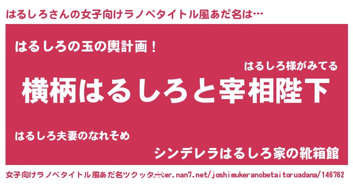 | 男性向けラノベタイトル風あだ名 | 『はるしろに滅ぼされるだけの簡単なお仕事です』 |