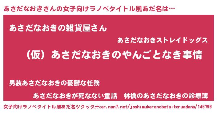| 胡散臭い通販商品みたいなあだ名 | 『必ず成功する霊験あらたかなお札…その名も「あさだなおき」』 |
