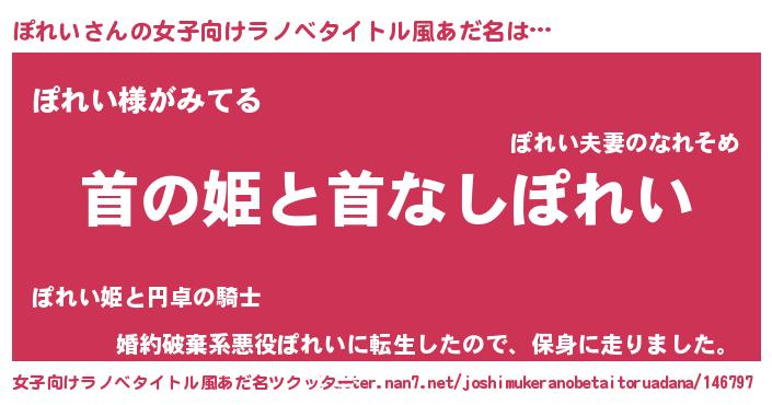 | 料理風あだ名 | 『栗とぽれいのマフィン』『ぽれいごはん』 |