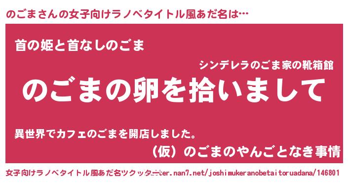 | 男性向けラノベタイトル風あだ名 | 『ダンジョンにのごまを求めるのは間違っているだろうか』 |