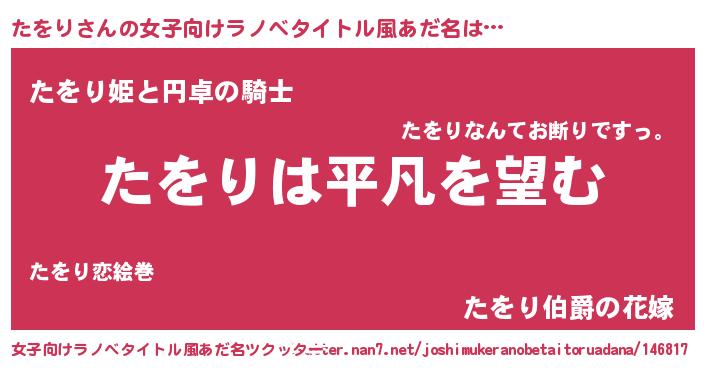 | 胡散臭い通販商品みたいなあだ名 | 『信頼と実績のサプリメント…その名も「たをり」』 |