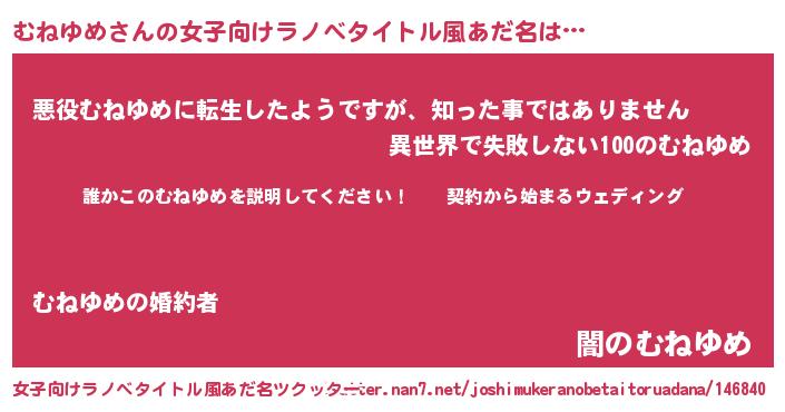 | ヘコむあだ名 | 『むねにゅー』『むねゆめ(爆)』 |