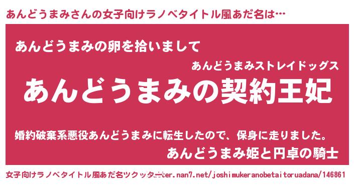 | 男性向けラノベタイトル風あだ名 | 『あんどうまみという概念が存在しない退屈な世界 』 |