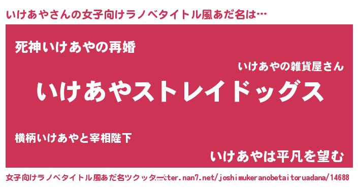 | 男性向けラノベタイトル風あだ名 | 『Re:いけあやから始める異世界生活』 |