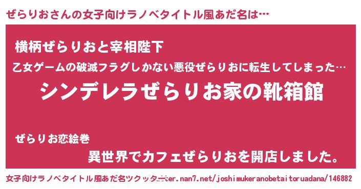 | 男性向けラノベタイトル風あだ名 | 『緋弾のゼラリオ』『魔弾の王とぜらりお』 |