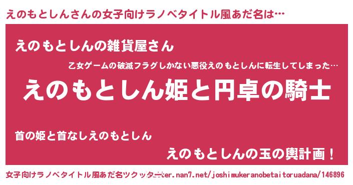| 男性向けラノベタイトル風あだ名 | 『エノモトシンアートオンライン』 |